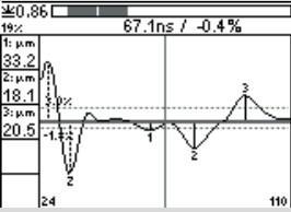 QSoft軟件可以顯示測量時A型掃描圖像,這樣可得到更加準確的數(shù)據(jù)。參數(shù)設置用于定義測量范圍,抗干擾, 回波診斷和預估截止帶范圍。通過設置的截止帶可以將雜波排除掉,例如由基材GRP或CRP纖維造成的雜波。
